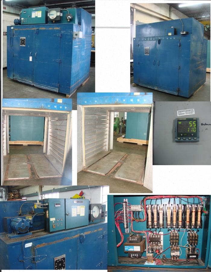 Despatch walk-in oven: model V-41STD: 64"W x 65"H x 68"L work area, 500F: double doors on both ends, aluminized steel interior, horizontal air-flow, insulated floor with wheel guide channels, Eurotherm 2416 solid state temperature control, chart recorder, 480V, 3PH, 38KW Please call for price